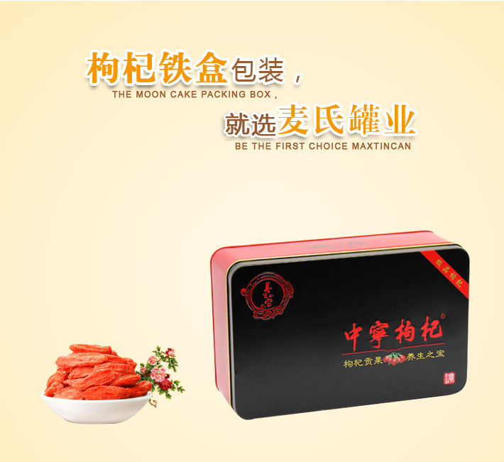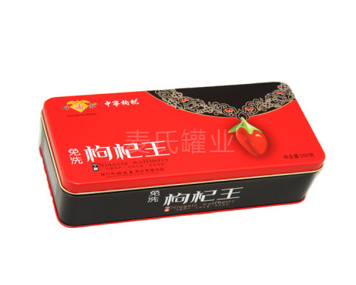 定做350g枸杞鐵盒子,長(zhǎng)方形黑枸杞包裝盒,食品鐵盒加工廠