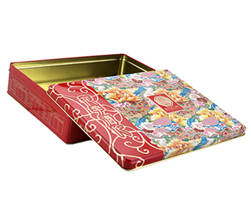 此款長方形酒樓禮品月餅鐵盒的尺寸為290*220*70mm,為了順應(yīng)多樣化的市場包裝需求,這款糖果馬口鐵盒可做成心形、正方形、橢圓形、車形、書本形等異形造型。