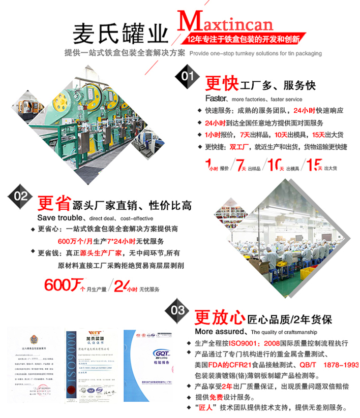 保健酒鐵盒加工廠——清遠市麥氏罐業(yè)多年來以的產品、誠信的服務深受廣大商家客戶的青睞。提供的產品質量上乘、價格合理,鐵盒產品多年通過ISO、SGS等機構測試,為您提供的鐵盒包裝產品。