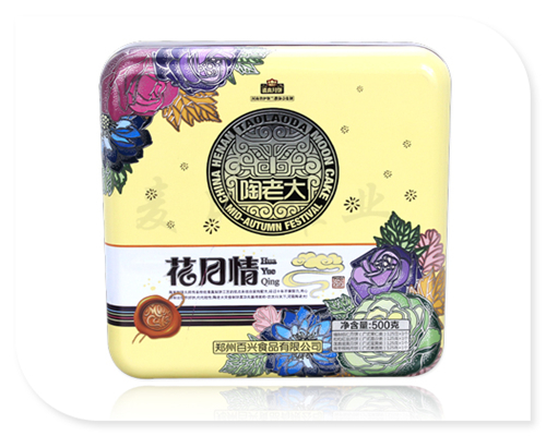 這四個(gè)裝月餅鐵盒形狀為大氣的波浪形造型設(shè)計(jì),也是2019年中秋月餅包裝鐵盒為的一款中秋包裝產(chǎn)品。此款馬口鐵月餅盒的規(guī)格為255mm*255mm*60mm,可包裝四只裝的各種口味的冰皮月餅、蓮蓉月餅、伍仁月餅等產(chǎn)品。
