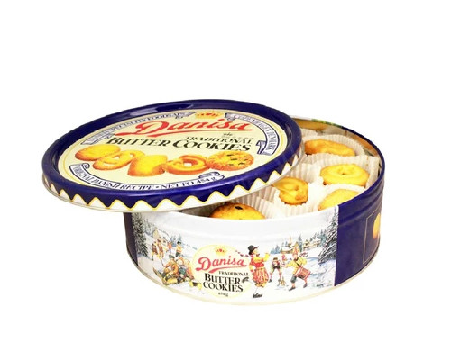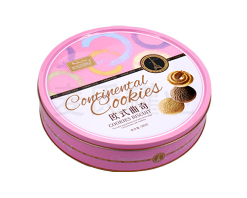 此款兒童曲奇餅干鐵罐包裝,為圓形蓋外卷、鑼底結(jié)構(gòu)。材質(zhì)選用國產(chǎn)0.23mm的鍍錫馬口鐵,除0.23mm厚度外,還可選用0.25mm,0.28mm的磨砂鐵或馬口鐵定制。用磨砂鐵制作鐵罐看起來更為精致。