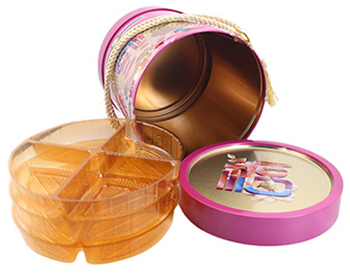 此款粉色珍情珍意月餅鐵盒的尺寸為∮220*265mm,為了順應(yīng)多樣化的市場(chǎng)包裝需求,這款茶葉馬口鐵盒可做成心形、正方形、橢圓形、車形、書本形等異形造型。
