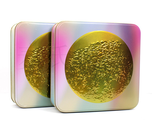 此款四塊裝中秋月餅鐵罐的表面印刷制作為PMS專色+CMYK四色專版印刷。而版面設(shè)計(jì)創(chuàng)意新穎,更符合了當(dāng)前年輕化包裝的發(fā)展需求。鐵罐在印刷面上還罩上了一層亮光油效果質(zhì)感,內(nèi)部亦此。過(guò)油的目的是為了提升鐵罐外觀質(zhì)感外,還提升了鐵罐的保護(hù)能力。使得盒子整體表現(xiàn)的更加帶起,真正體現(xiàn)出外包裝所帶來(lái)的高市場(chǎng)價(jià)值。