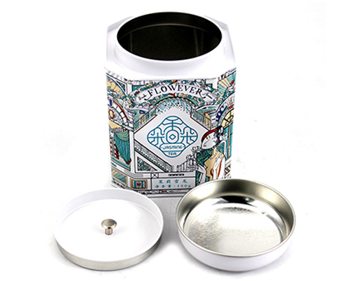 這款六角形白色通用茶葉罐鐵盒的尺寸為95*95*135mm,為了順應(yīng)多樣化的市場包裝需求,這款茶葉馬口鐵盒可做成心形、正方形、橢圓形、車形、書本形等異形造型。