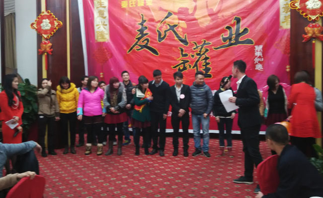 2015年2月1號(hào)晚,清遠(yuǎn)市麥?zhǔn)瞎迾I(yè)有限公司一年一度的年終盛典在一片祥和的氣氛中清遠(yuǎn)新銀盞溫泉度假酒店隆重舉行。晚會(huì)當(dāng)天,除公司各位領(lǐng)導(dǎo)和全體員工外,多家供應(yīng)商領(lǐng)導(dǎo)也出席了本次晚會(huì),大家歡聚一堂,恭賀新年。