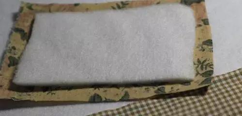 1、按照盒子尺寸大小,將表布裁剪出來(大于盒蓋,尺寸為盒蓋加盒邊)鋪棉大小為盒蓋大小。