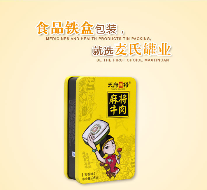 食品包裝鐵皮盒子-訂做食品鐵盒子,食品金屬包裝鐵盒,食品馬口鐵盒加工結(jié)構(gòu)尺寸:160*100*51mm,材質(zhì):0.23mm鍍錫馬口鐵制作;印刷:單面或雙面四色/專色印刷。可做激凸。雕刻工藝。可提供設(shè)計(jì)稿件由鐵盒生產(chǎn)廠家麥?zhǔn)瞎迾I(yè)訂做!
