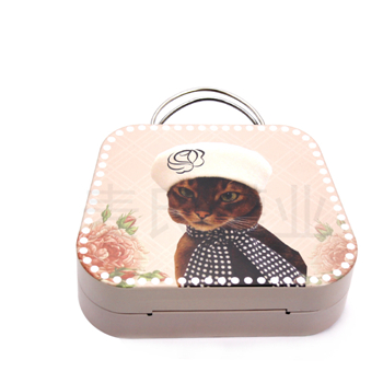 此款手提包包罐加工,合成皮革材料的手提配件,190*150*60mm規(guī)格的盒身緊緊相連,給消費(fèi)者看起來像一個(gè)行李小盒一樣,精美別致。喵咪的可愛風(fēng)格設(shè)計(jì),更適合兒童或女生使用。鐵盒印刷為單面四色印刷工藝,外層涂布致密的鐳射鍍膜,讓鐵盒外觀在不同角度呈現(xiàn)不同的視覺效果。這款鐵盒能包裝各種玩具、手表、食品、禮物等禮品。