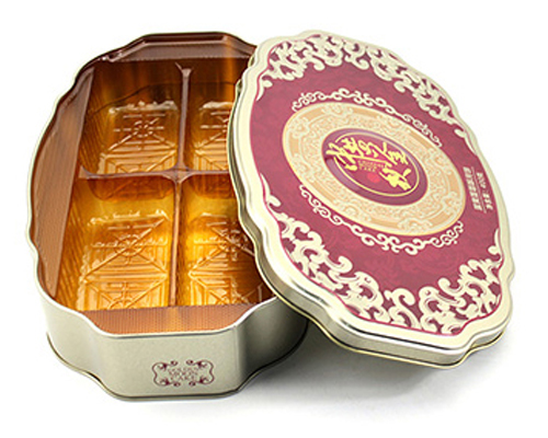 這款蛋黃蓮蓉酥月餅鐵盒的尺寸為310-195-60mm,為了順應(yīng)多樣化的市場包裝需求,這款糖果馬口鐵盒可做成心形、正方形、橢圓形、車形、書本形等異形造型。