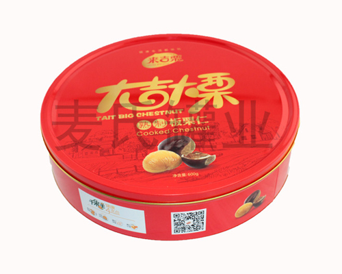 圓形板栗鐵皮盒子(鐵盒子,鐵盒加工,鐵盒廠家)尺寸:285*70mm,麥?zhǔn)瞎迾I(yè)印鐵制罐廠家為您介紹更多食品鐵盒包裝產(chǎn)品信息、價(jià)格以及市場(chǎng)價(jià)值。