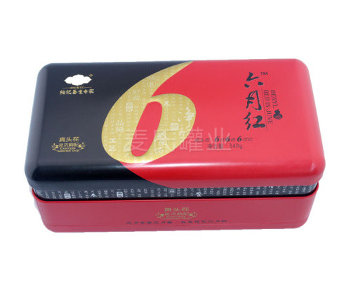 一斤裝枸杞子鐵盒(寧夏枸杞包裝鐵盒,方形枸杞禮盒)采用單面1專色+四色印刷工藝制作,外過水性亮光油,內(nèi)過金油,鐵盒整體為蓋、身、底印刷處理。此款鐵盒為216*136*72mm的規(guī)格尺寸,可包裝500g的枸杞,可選擇其他容量的包裝需求。