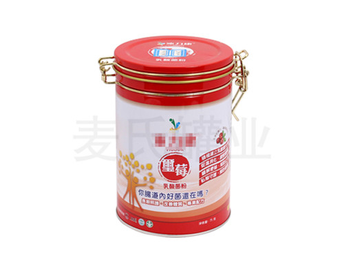 新款綜合益生菌復(fù)合粉馬口鐵罐,為一款保健品金屬包裝容器。印刷為四色印刷+1專工藝,外過光油、內(nèi)過符合國家食品檢測的金油。鐵罐的底部可以根據(jù)客戶的要求印刷或不印刷。鐵罐的整體上的印刷都是根據(jù)客戶提供的設(shè)計稿或印刷要求來印刷的。盡大能力滿足客戶的個性化定制要求。